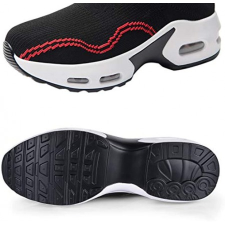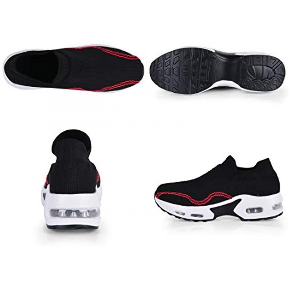 Womens Walking Shoes Sock Sneakers Slip On Mesh Platform Loafers Comfort Wedge Walking Shoes Black-Red